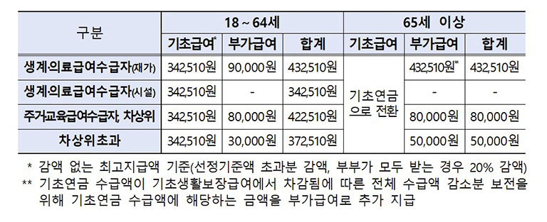 복지부에 따르면 올해 장애인연금 기초급여액은 전년도 대비 7700원이 오른 34만 2510원으로 결정됐다. 여기에 장애로 인해 추가로 발생하는 생활비를 보전하기 위한 부가급여 9만 원이 합산된다. 급여 지급일은 매월 20일로, 이번 달부터 인상된 금액이 적용된다.