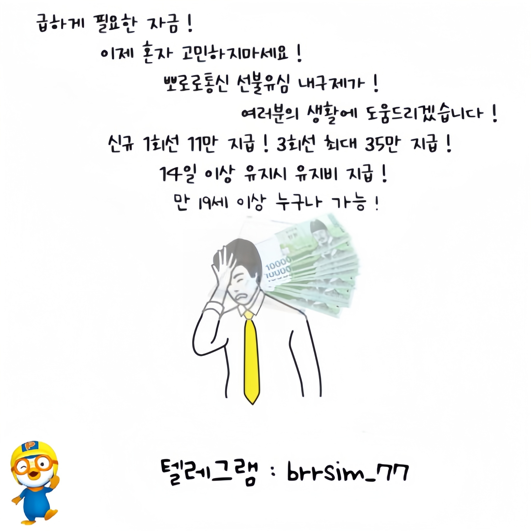 텔레그램 : @brrsim_77 선불유심 매입 뽀로로 통신 대포유심가격 당일 소액급전 내구제 종류 당일급전대출 무기명유심 무제…